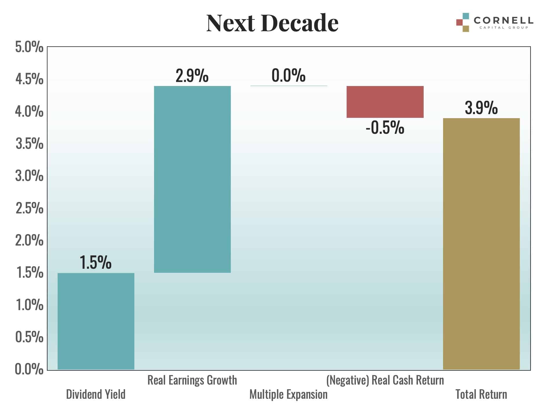 So, if you add all these up, you get 3.9% per year, which is the Cornell Capital Group’s expectation for stocks as a whole during the next decade. So, it’s a good deal less than the last decade, and we urge investors to adjust their expectations and perhaps spend more time looking for specific opportunities because the rising tide that lifted everyone last decade is not likely to continue.