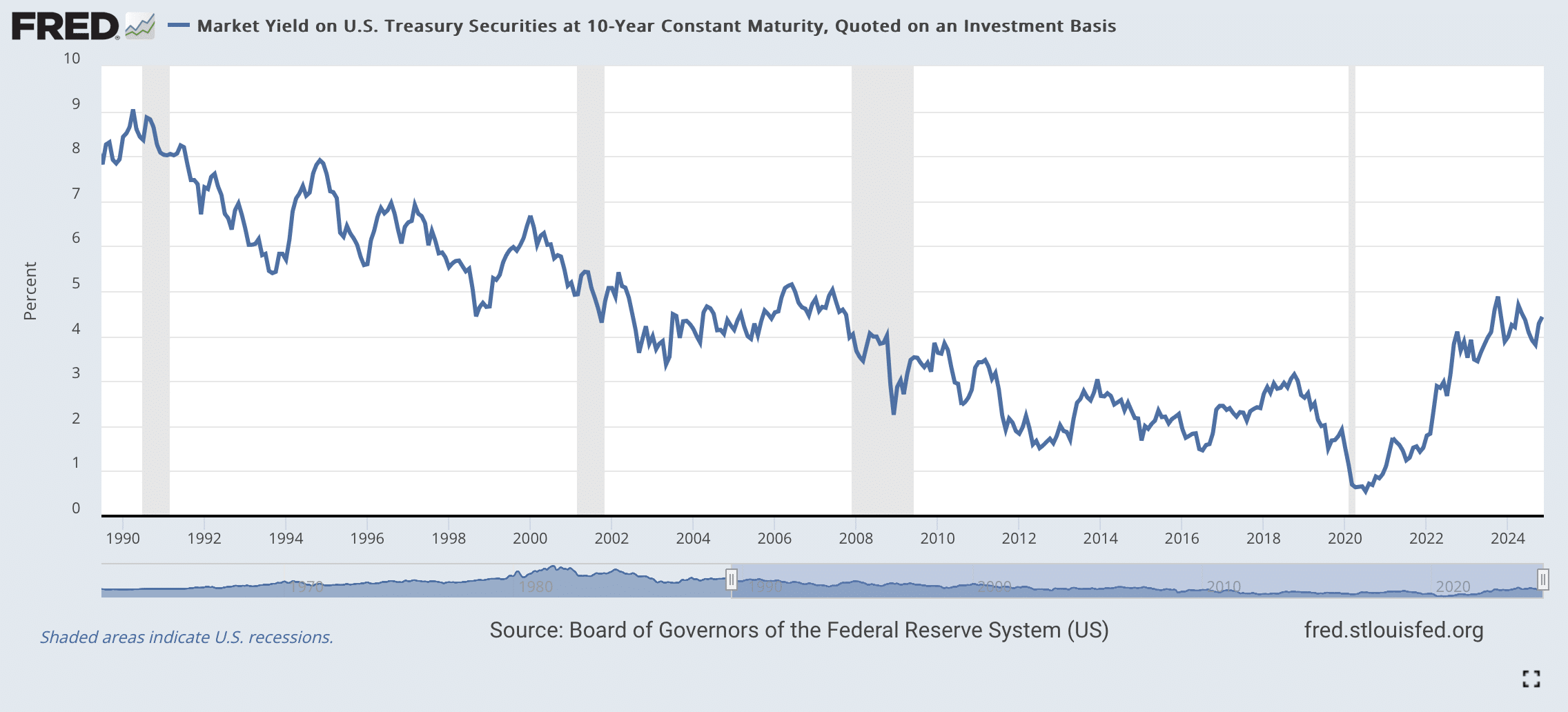 Because interest rates play such a critical role, let’s examine one of the most important rates: the 10-year Treasury yield.