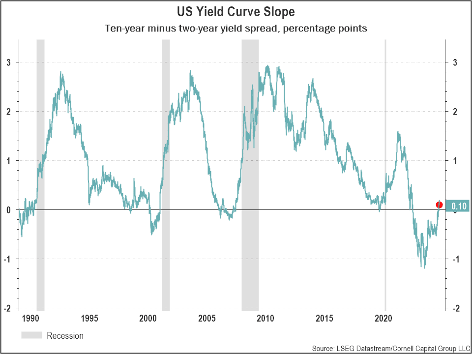 In our Q2 memo we noted that recession signals continued to flash. We focused on two indicators in particular, the slope of the yield curve and Sahm rule. We noted that “These indicators should be taken with a grain of salt. Perhaps this time will be different, and the economy will avoid a recession. But it would be foolhardy to ignore them entirely. They are yet another reason, along with stretched valuations, to follow a conservative, low-risk, investment strategy.”