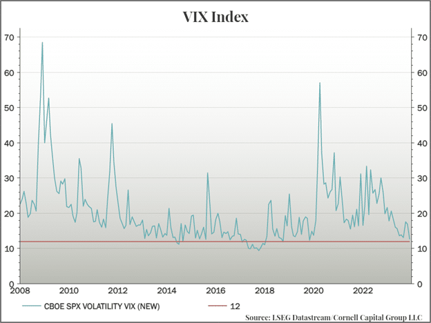 We are not so sanguine. In our view there is still a significant chance that the economy will turn down in 2024, if not fall into recession. We also believe that the decline in the risk premium that drove much of the stock market boom in 2023 has reached its limit. If the premium were to return to its historical average in 2024, the result would be a sharp drop in stock prices. Consequently, we plan to be even more cautious and more fully hedged at the start of 2024 than we were at the beginning of the fourth quarter. Of course, this means that if the market continues to charge forward, we will underperform indexes such as the S&P 500, but we feel this is a reasonable price to pay for reducing the risks associated with either a market correction or a slow train to nowhere as the upward momentum comes to an end.