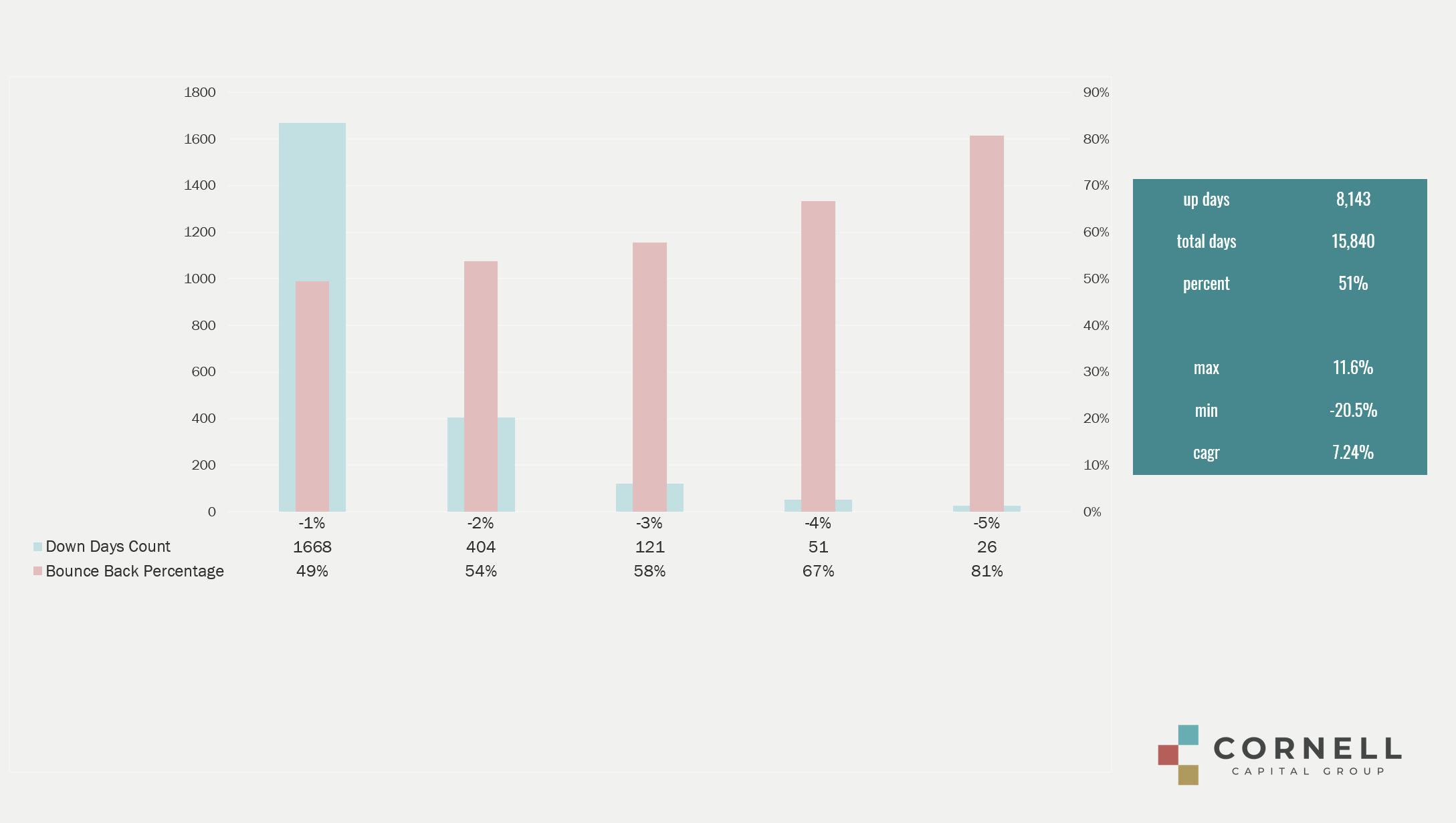 And we asked: if in those 15,000-plus days there’s a big down day, is there a bounce back?