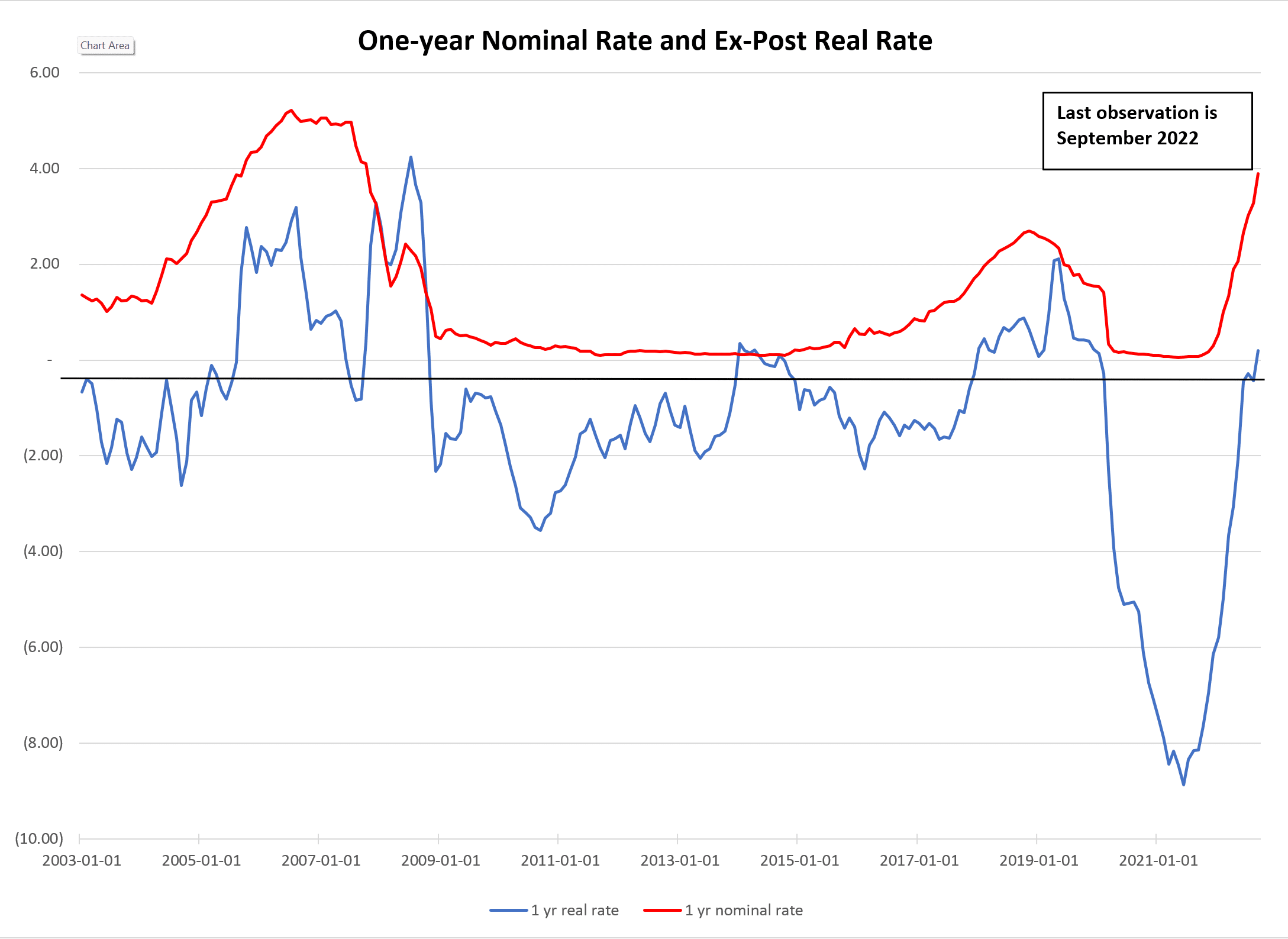 But from the period of time beginning with the end of the financial crisis, the ex post real rate on one-year Treasury investments was almost uniformly negative. And in the period of 2021 and early 2022, it was as low as -8%.