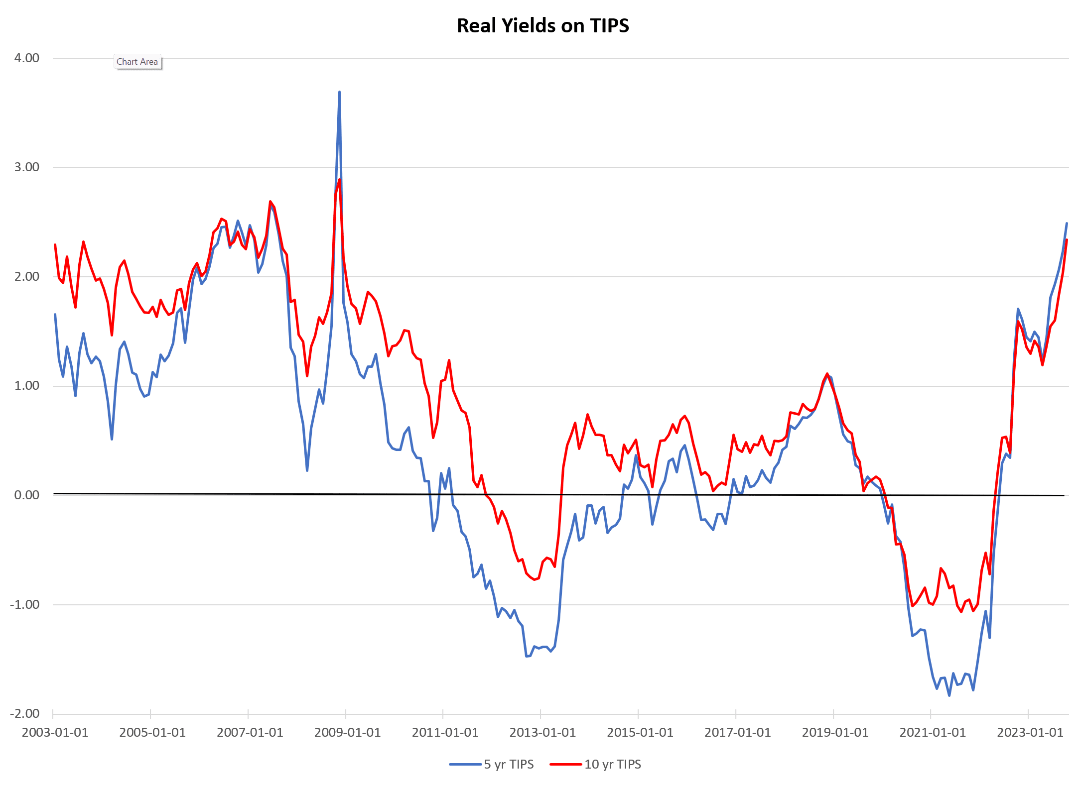 That is, if you bought the security, you had to pay the government in purchasing power. Remarkably, in the last month or two, the real returns have returned to about 2 and a half percent, and that’s over the next 5 to 10 years. So, the markets are looking at a very different long-run future now than they were as recently as a year ago.
